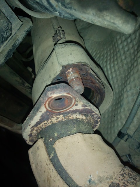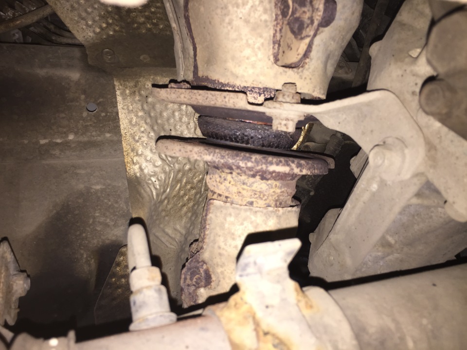 4. Опустите центральную трубу вниз (возможно, придется снять трубу с резинового кронштейна) и извлеките шпильки приемной трубы с отверстий трубы интегрированного каталитического нейтрализатора.