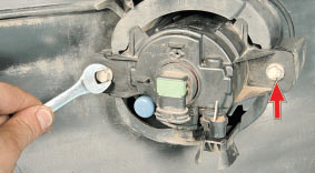 Замена показана на примере левой противотуманной фары. Правую противотуманную фару заменяют аналогично.