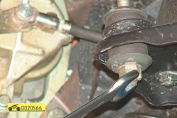 4. Удерживая ключом от проворачивания палец шарнира стойки, другим ключом отверните гайку пальца и, отсоединив палец от стабилизатора, снимите стойку.