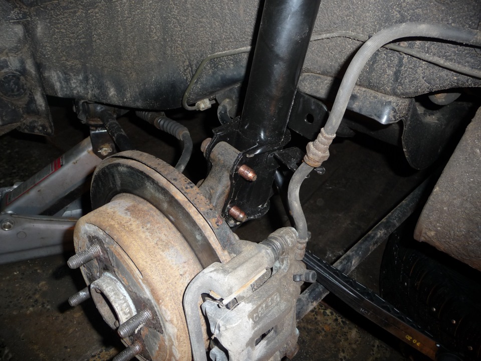 Не забываем предварительно отсоединить от стойки тормозной шланг и тягу стабилизатора.