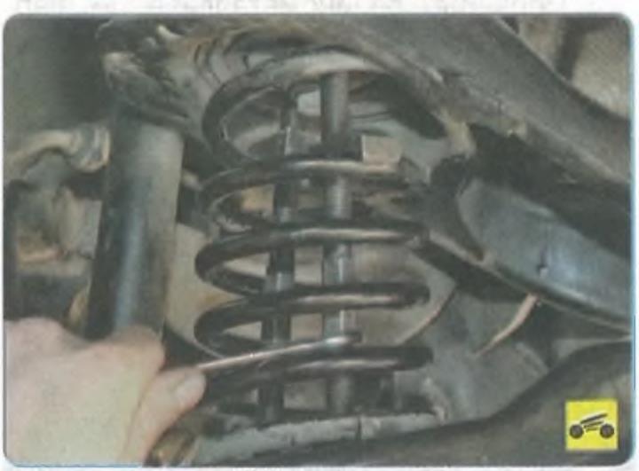 Снятие и установку пружины выполняйте предельно осторожно во избежание получения травм в результате выстреливания пружины из подвески.
