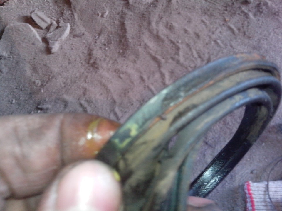 5) Снимаем старый рваный пыльник с поршня. Радуемся что вовремя провели эту процедуру, потому что все чисто, пыль еще не успела сильно попасть на поршень!