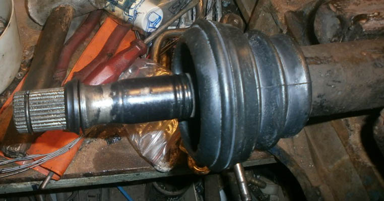 9. Дальнейшие операции зависят от проверки ШРУСов под пыльниками. Снимите защитные чехлы и осмотрите шарниры. Шарниры выбиваются через деревянную выколотку.