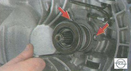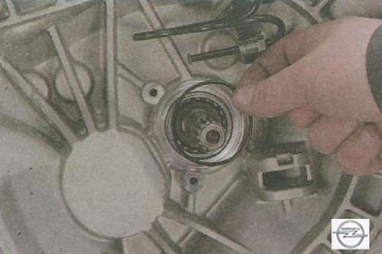 5. Извлеките из пазов картера сцепления уплотнительное резиновое кольцо, подцепив его отверткой.