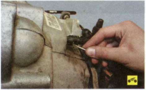 2. Если коробку передач сняли вместе с трубопроводом гидропривода выключения сцепления, подденьте отверткой.
