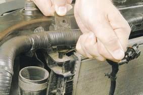 19. Снимите и осмотрите верхние резиновые подушки крепления радиатора.