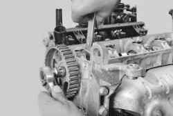 4. Удерживая распределительный вал от проворачивания ключом за шестигранник...