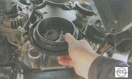 Для замены ремня привода газораспределительного механизма двигателя Z 16 XER выполните следующее.