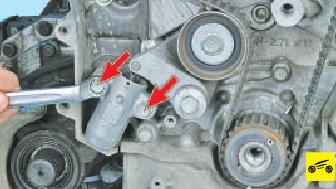 - 20. Установите натяжной механизм, ремень привода газораспределительного механизма и его ролики.