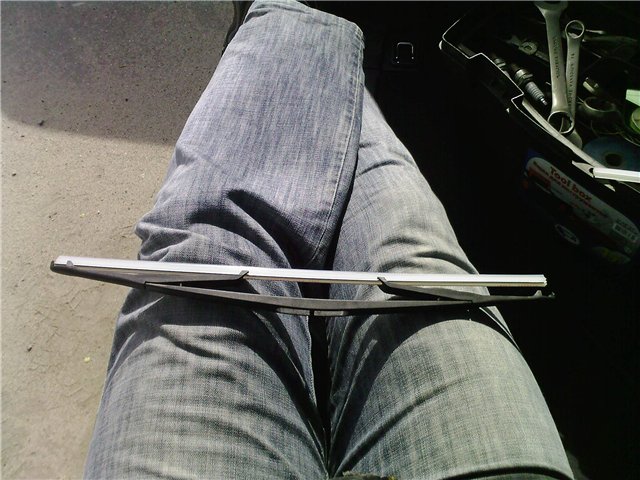 3. Дворник разобран. Теперь просто надо сменить резинку, вынув направляющие из старой резинки, и вставить в новую. Отрезать нужную нам длину резинки, я ещё оставил по 5мм с концов резинки, чтобы была немного длиннее. Но есть один нюанс: обратно в дворник будет тяжелее вставлять, так как длина его увеличилась.