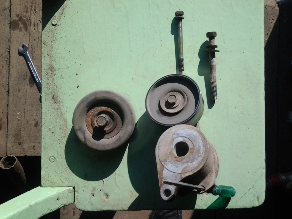 6. Собираем все назад, смотрим чтобы ремень везде был на своем месте (не слетел со шкивов), и отпускаем натяжитель.