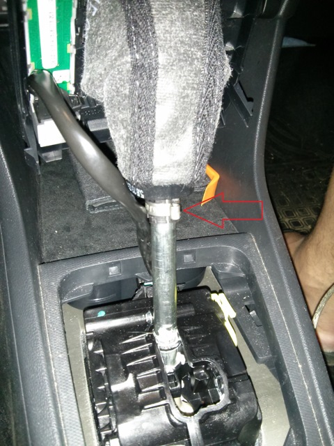 7. Снимаем ручку с чехлом со штифта, освобождая её от рамки с индикацией передач.