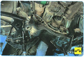 31. Выверните два болта крепления передней опоры двигателя к поперечине передней подвески...