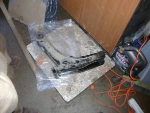 6. После хорошо смазываем соединения аэрозольной смазкой WD-40, при этом покачивая их. Снимаем рычаг с подрамника, после чего необходимо правильно подобрать рычаг, сравнивая размеры старого и нового, нужно, что бы они полностью совпадали крепежными отверстиями.