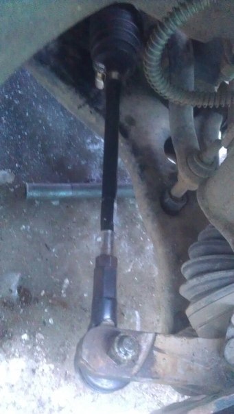 Чтобы не мучиться с развал-схождением я измерил расстояние от шарнира до рулевого наконечника, а точнее до контргайки.