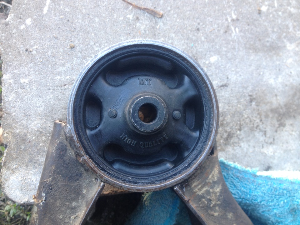 Скажу сразу — это заняло у меня ни 40 минут, как некоторые писАли, а значительно больше, ибо подушка эта находится в сзади, и откручивать ее крайне неудобно, особенно когда один и раньше этого не делал. Предыдущие хозяюшки не очень-то любили что-либо делать с машиной, но судя по "слизанным" граням на болтах, которые крепят опору к подрамнику, можно сделать вывод, что как минимум были попытки что-то изменить.