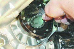 1. Для замены сальника полуоси слейте масло из коробки передач.