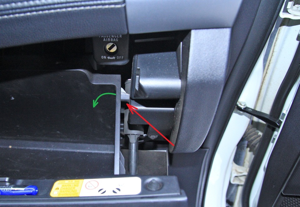 2. Отсоедините штангу, ограничивающую открытие вещевого ящика.
