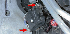 2. Выверните 2 болта крепления электропривода управления заслонкой.