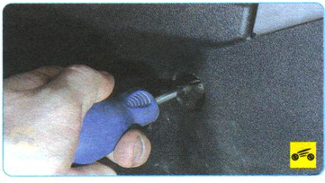 24. Подденьте отверткой фиксатор обивки тоннеля пола..