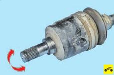 - 32. Установите чехол внутреннего шарнира привода левого переднего колеса и шарнир в порядке, обратном снятию.