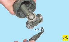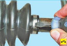 - 3. Для замены наружного шарнира или его чехла отсоедините отверткой или перекусите бокорезами замок хомута крепления большого чехла наружного шарнира и снимите хомут.