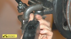 Отсоединение пальцев шарниров показано на примере правой тяги при снятом (для наглядности) переднем колесе. Остальные шарниры отсоединяют аналогично.