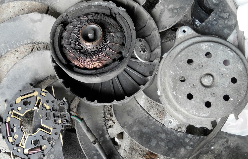 3 — далее я обрезав провод на вентилятор (в отличие от статьи Twincar, у нас не надо раскручивать отдельно двигатель от вентилятора), вынул его между целиком вверх без особых мучений.