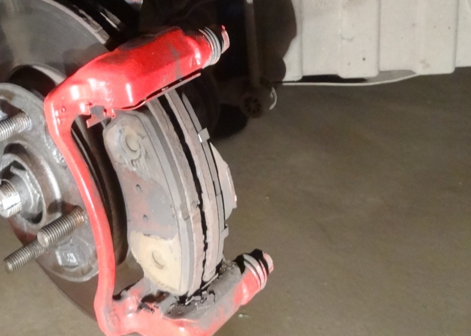 7. Выверните болты крепления суппорта тормозного механизма к поворотному кулаку, и снимите суппорт.