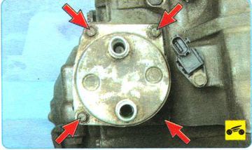 13. Выверните четыре болта крепления теплообменника к картеру АКП (вариатора)...