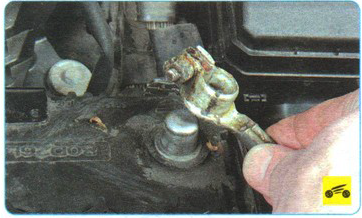 3. Отсоедините провод от клеммы «минус» аккумуляторной батареи.