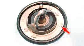 Для проверки опустите снятый с двигателя Ниссан Кашкай термостат в емкость с водой. Нагревайте воду, постоянно перемешивая, до температуры 80–84 °С. При дальнейшем повышении температуры шток термостата должен начать выдвигаться из силового элемента. При температуре жидкости 95–97 °С термостат должен полностью открыться. Если этого не происходит, замените термостат.