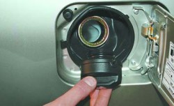 5. Выведите из канавки уплотнителя наливной горловины топливного бака стопорное кольцо...