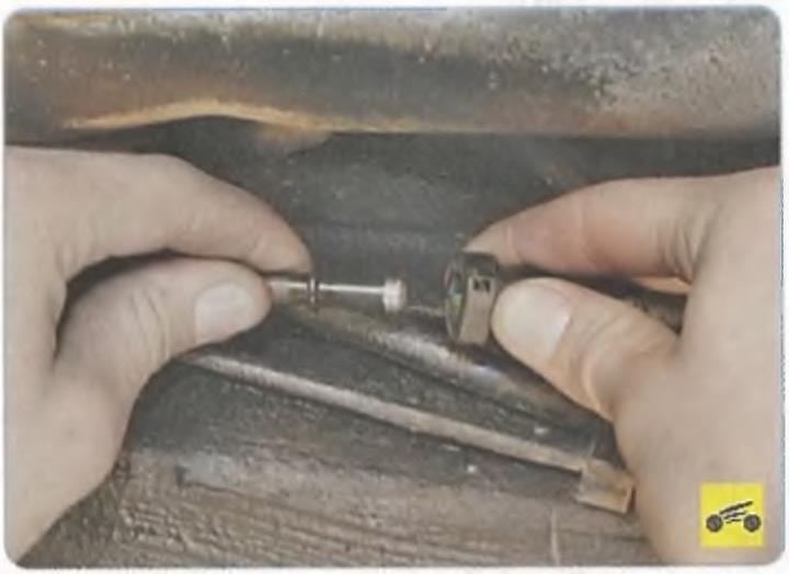 Снятие поперечины задней подвески необходимо потому, что при установленной поперечине наливную трубу невозможно пропустить через зазор между поперечиной и кузовом.
