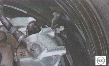 9. Таким же способом замените тормозную жидкость в рабочем цилиндре тормозного механизма левого переднего колеса Опель Астра H.