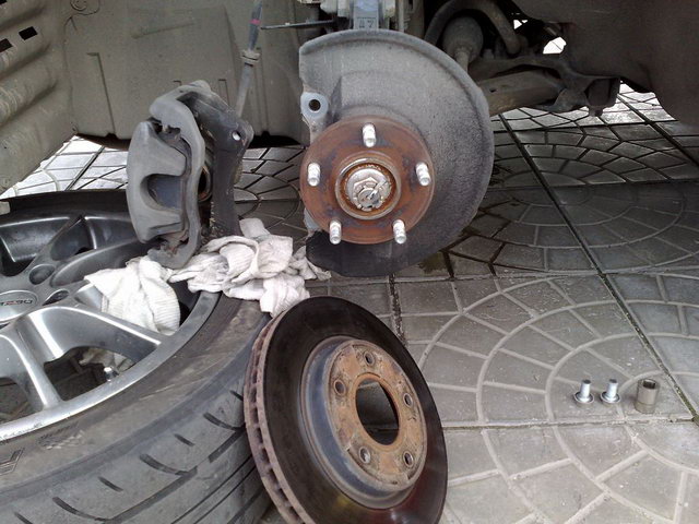 4. Закрутите колесо, и проделайте такую же операцию где вы хотите заменить тормозные диски.
