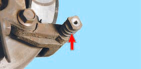 11. Для замены пыльника извлеките направляющий палец из отверстия в направляющей колодок.