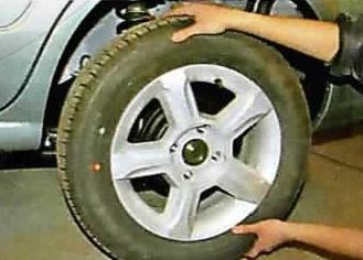 1. Ослабьте гайки крепления колес на стоящем на земле автомобиле.