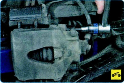 6. Снимите суппорт в сборе с тормозными колодками Шкода Октавия.