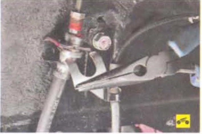 20. ..выньте наконечник из кронштейна на продольном рычаге...