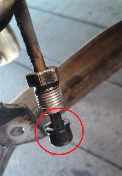 Старый и новый болт крепления шланга, и две уплотнительные шайбы.