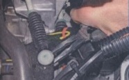 Используя плоскогубцы отсоединяем наконечник троса выбора передач.