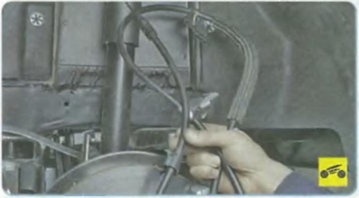 13. Выверните болт крепления держателя троса к продольному рычагу.