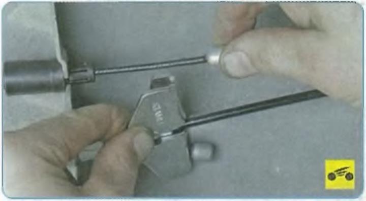 4. Если трос не выходит из паза уравнителя, то, удерживая пассатижами, немного разожмите паз отверткой.