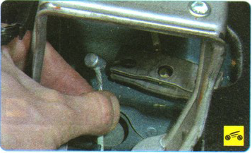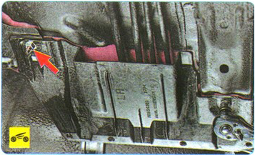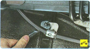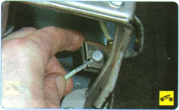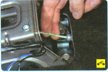 4. Выверните болт крепления кзонштейна оболочки троса к кузову.