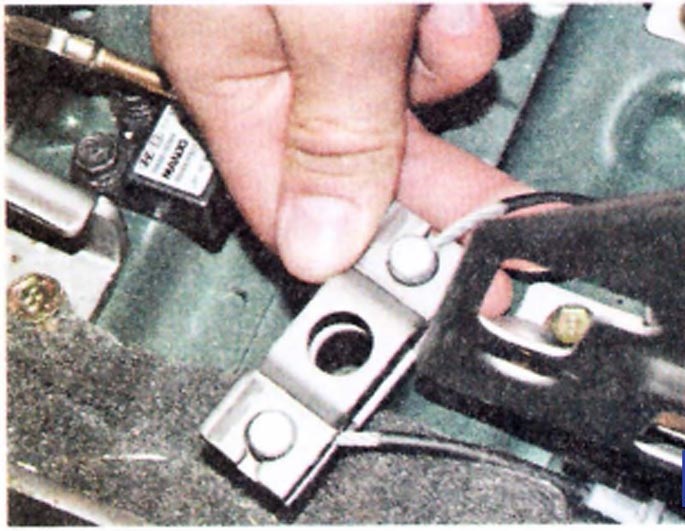 10. Вытянуть трос из отверстия в кузове снизу и демонтировать его из автомобиля.