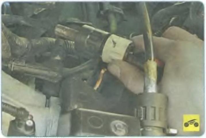 11. Аналогично отсоедините от кронштейна на коробке передач трос выбора передач.