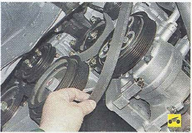 3. Снимите ремни привода вспомогательных агрегатов (компрессора кондиционера, генератора и водяного насоса, гидроусилителя рулевого управления, более подробно здесь.)