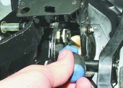 5. ...и выньте палец из отверстия вилки толкателя и педали тормоза.
