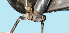 4. Удерживая от проворачивания болт нижнего крепления стойки стабилизатора поперечной устойчивости к нижнему рычагу, отверните гайку и извлеките из отверстия болт.